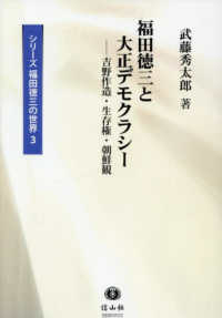 福田徳三と大正デモクラシー : 吉野作造・生存権・朝鮮観 (シリーズ福田徳三の世界:3)/武藤秀太郎著 |